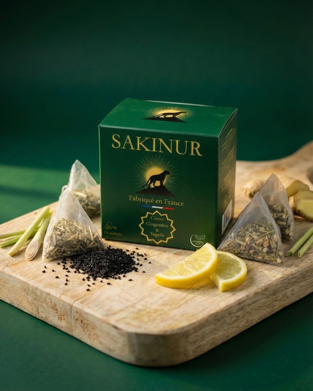 Chaque recette intègre la nigelle, aussi appelée cumin noir ou habbassaouda, présente dans toutes les compositions Sakinur et au cœur de l’identité de la marque.
