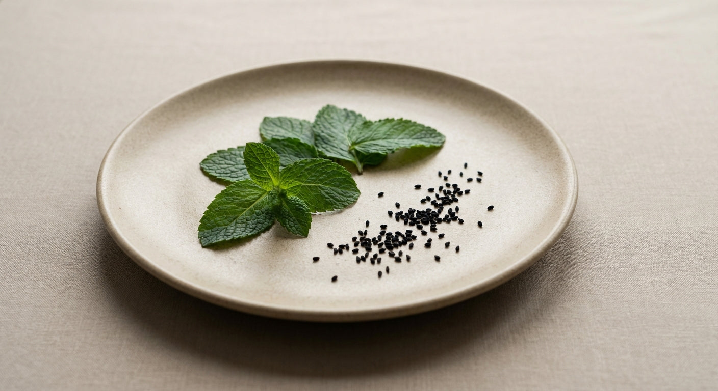 Un rituel de fraîcheur et de réconfort.La menthe poivrée et la nigelle se rencontrent pour apaiser le corps et réveiller l’esprit.